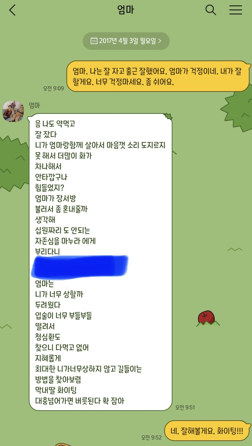 사랑해 엄마. 앞으로도 잘 살아볼게. 막내딸 화이팅!