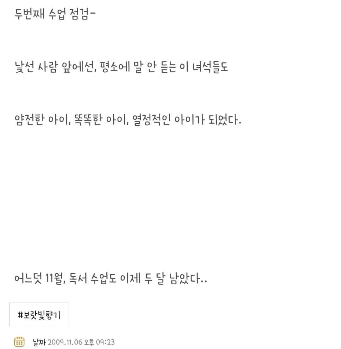 무언가에 정성을 쏟아붓는다는 것은 참 힘들고 어려운 일이며 열정을 불태운다 하는 말은 생각보다 쉽기도 하며, 어렵기도 하다. 그러다 오늘 문득 그 열정이란 말을 열심이란 말로 슬쩍 바꿔치기해 보았다. 그랬더니 나름 열심히 살았다고 자부하는 나의 20대가 떠올랐다.