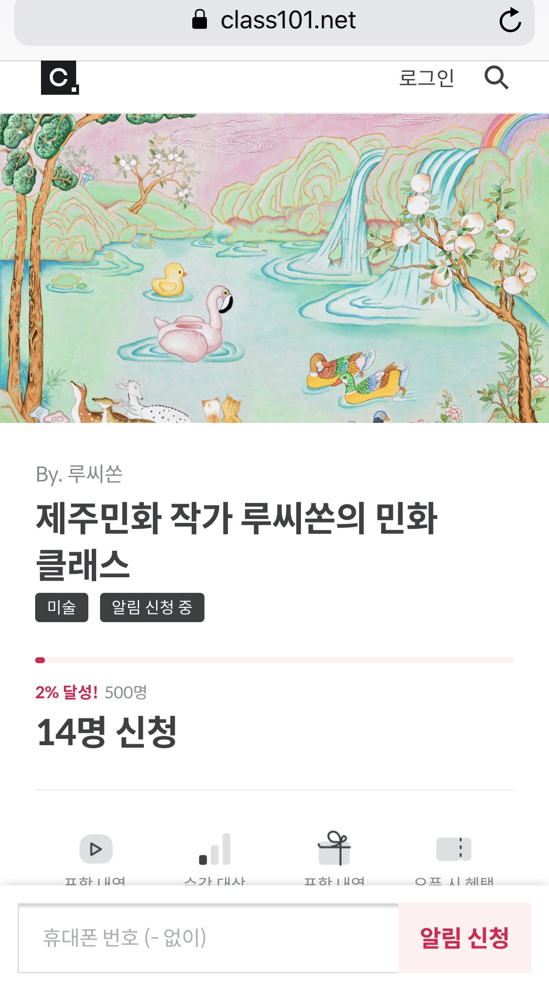 클래스 101에서 온라인 수업을 계획 중에 있어요. 지금은 수요 조사 기간이고 어느 정도 인원이 모여 수요가 있다고 판단되면 수업을 오픈할 수가 있어요. 개인전 준비 중에 수업 요청을 받게 되어 고민했었는데 더 많은 분들에게 민화를 알리고 제가 그간 쌓은 노하우들을 나누는 좋은 기회가 되니라 생각하여 오픈하게 되었답니다. 제가 제주에 있기도 하고 오프라인 클래스는 일주일에 두 번밖에 클래스를 오픈하지 않아 그동안 해외나 육지에 계신 분 그리고 제주에서도 멀리 사시는 분들 혹은 시간이 맞지 않아 참여가 어려우신 분들이 많아 아쉬웠는데요! 드디어 온라인 클래스가 오픈합니다! 모두 모두 모여주셔요.