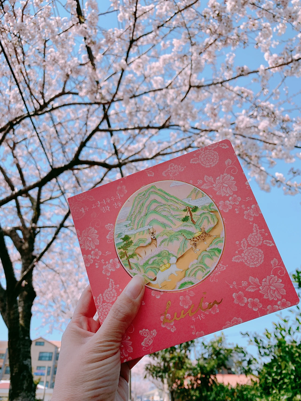 첫 번째로, 그림과 글을 정리하여 독립출판물인 ‘제주 고양이 부부의 민화 선물’ 이란 책을 만들었어요 :-) 소량 제작한 화집 개념의 리미티드 에디션이라 이미 모두 판매되었지만 브런치 독자님들께도 살짝궁 보여드리려고요. 제주에 여행 오시면 몇몇 책방에서 만나보실 수 있답니다.