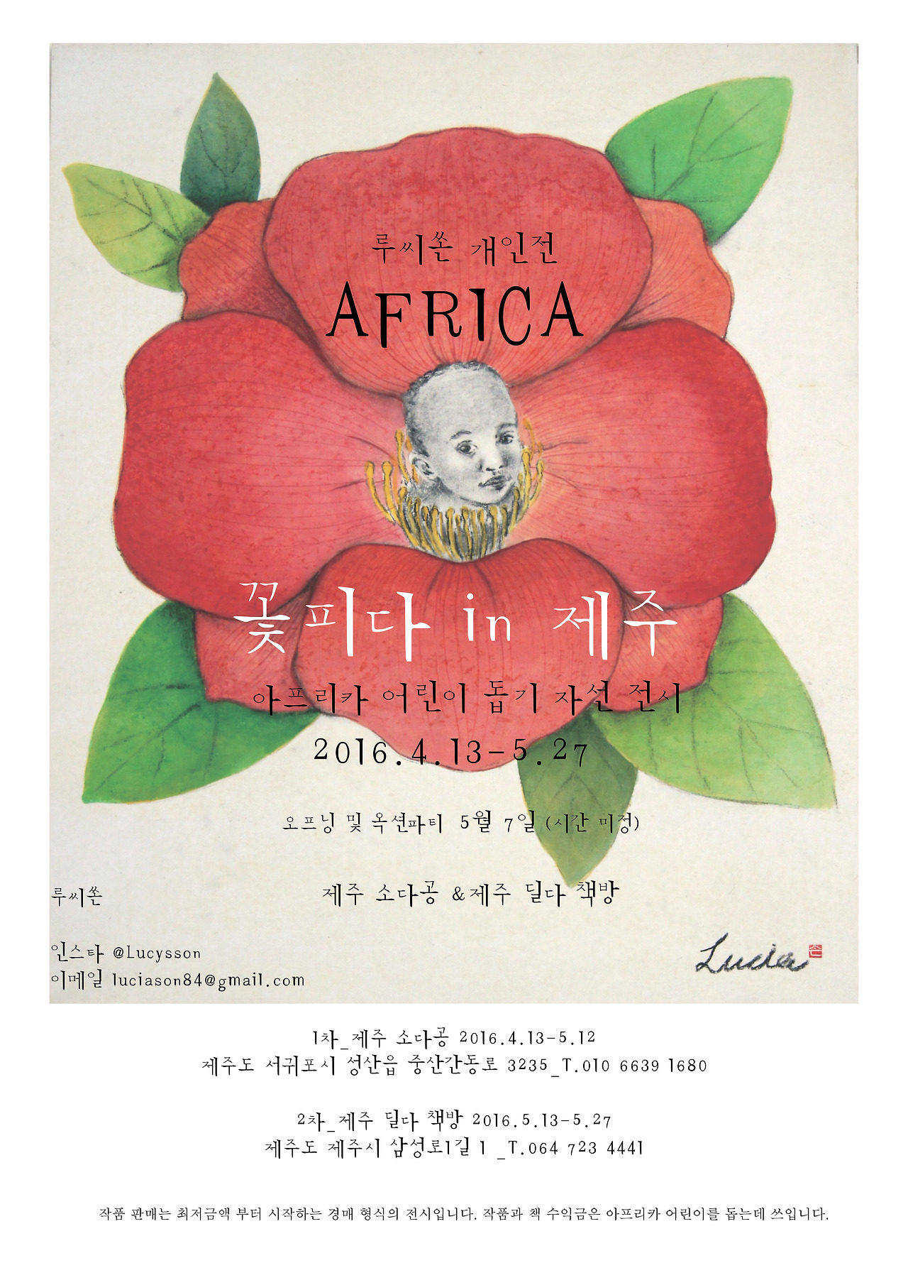 안녕하세요. 꽃피는 봄 제주에서 아프리카 어린이 돕기 자선 전시회에 여러분을 초대합니다.