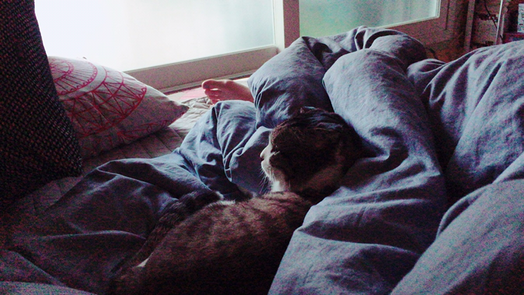 그 시간에, 침대에 걸터앉아 괜히 멍을 때려본다. 밥 달라고 야옹거리고 놀아달라고 다리를 살며시 깨무는 동거묘猫 주노와 같이 바닥에 누워 쓰담쓰담 그르렁그르렁 거리는 시간.