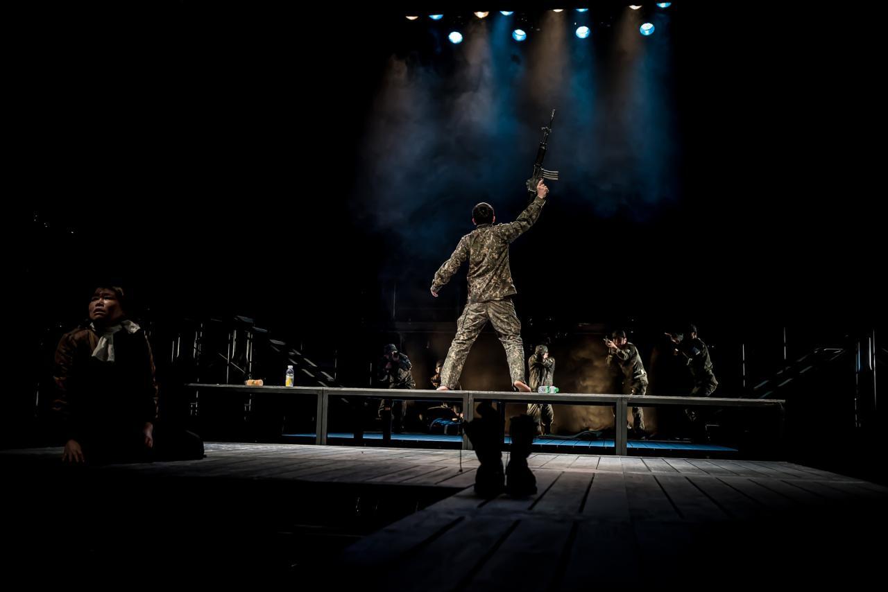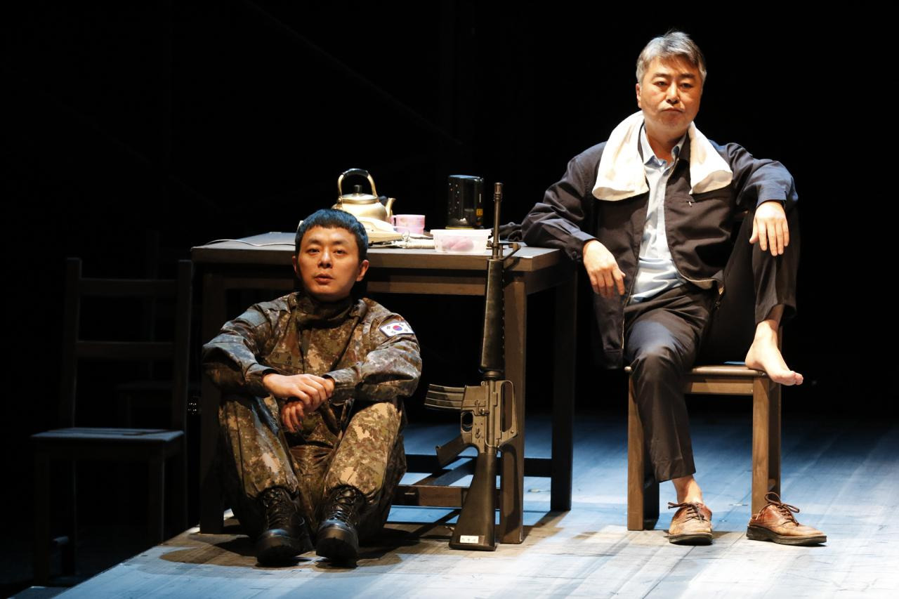 극장 안에 연기가 자욱하다. 가수 송창식의 <병사의 향수>가 흐르고 각기 다른 시공간의 군인들이 무대 곳곳에 들어선다. 이윽고 2017년의 대한민국 경남, 1945년의 일본 가고시마, 2004년의 이라크 팔루자, 2010년 대한민국 서해 백령도의 군인들, 그들의 이야기가 능숙하게 교차된다.