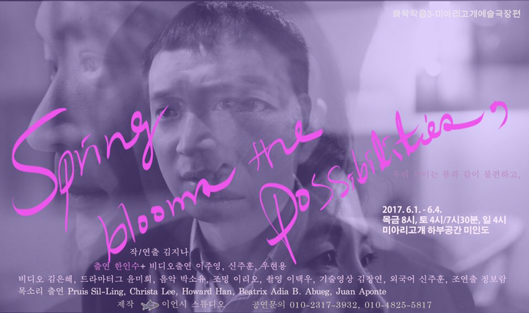 연극의 무대는 미아리고개 하부 공간에 예술극장 미인도라는 이름을 붙여 활용한 불완전한 공간에 마련되었다. 머리 위로는 계속해서 차들이 지나가는 소리가, 벽면에서는 오가는 사람들의 음성이 끊임없이 들려왔다. 마치 방음이 잘 되지 않는 이태원 조의 방에 있는 것처럼, 끊임없이 외부의 소리들이 밀려왔다. 연극 해설에서 밝힌 바와 같이 그 불완전함은 조의 그것과 맞닿아 있다. 무대환경의 불안정한 물리적인 요소는 관객의 집중을 불러오는데에는 다소 어려움이 있었지만 조의 불안함을 전달하는데에는 효과적이었다.