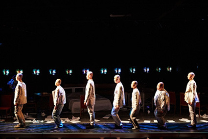 연극은 소설이 이야기하는 삭막하고 차가운 가상의 세계를 가시적으로 담는 데 성공했다. 민머리의 배우들은 일렬로 나란히 앉아 팔과 몸과 머리를 휘두른다. 그들의 몸에 비추인 빛은 또다시 그들과 나란한 그림자를 만들어 무대 위를 가득 채운다. 그들 뒤로 흐르는 전자음악과 감시용 텔레스크린으로 보이는 모니터들에 번쩍이는 영상(영상은 무대 위를 실시간 녹화하여 현장의 장면을 재생한다), 부지런히 한 방향으로 그들을 실어 나르는 컨베이어벨트, 한 귀퉁이에 펄썩이는 채석장의 먼지, 관객을 향해 등을 돌린 무대 위 배우들, 그들이 입은 옷에 쓰여진 그들의 이름과 그들을 나타내주는 기록 등 아주 작은 부분도 놓치지 않고 담아낸다.