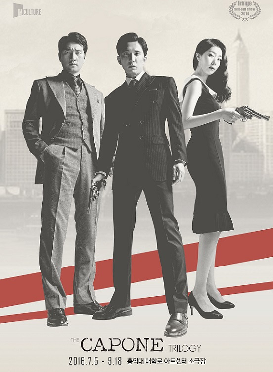 갱스터 느와르 <카포네 트릴로지(The Capone Trilogy)>는 영국 연출가 제스로 컴튼이 2014년 에든버러 프린지 페스티벌에서 초연한 작품을 국내 관객들의 구미에 맞도록 각색한 작품이다. 컴튼은 한 공간을 중심으로 3가지 에피소드를 옴니버스 형식으로 구성하고 동일한 배우들이 이 3가지 에피소드를 모두 연기하는 방식으로 작품을 선보이고 있는데, <카포네> 삼부작 역시 그러하다. 국내에서도 그 방식을 그대로 차용하여, 극의 처음부터 끝까지 긴장감의 밀도를 지켜나간다.