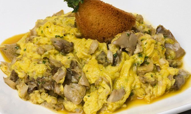 그래서 오늘은 지방의 향을 단단하게 붙잡는 이 계란의 원리를 활용한 요리를 소개한다. 전혀 생소한 난생처음 듣는 이름일 텐데 스페인의 소박한 계란 요리 'Revuelto 레부엘토'다. 거창해 보이는 이름과는 달리 레부엘토는 스페인어로 그냥 ‘범벅’ 정도로 해석할 수 있는데 기본적으로 부드럽게 익힌 스크램블 에그로 이해하면 편하다. 현지 레스토랑 메뉴판에서 자주 만날 수 있는 이름이니 스페인 여행을 염두에 둔다면 눈에 익혀두면 좋겠다. 스페인에서는 버섯이나 염장 대구가 들어간 ‘레부엘토 데 세타스(버섯)’, ‘레부엘토 데 바칼라오(염장대구)’가 유명하다.