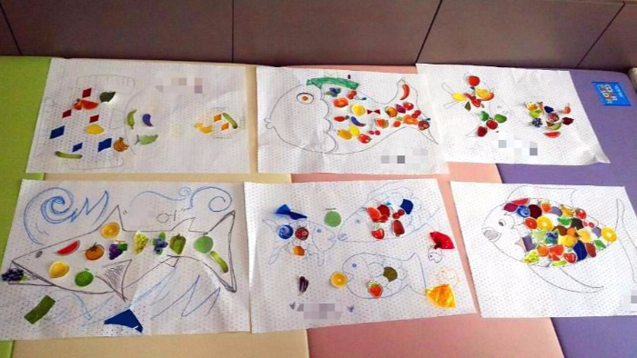- 엄마가 칼로 물고기에 구명을 내서 셀로판 종이를 활용해 주면 더욱 재미있음