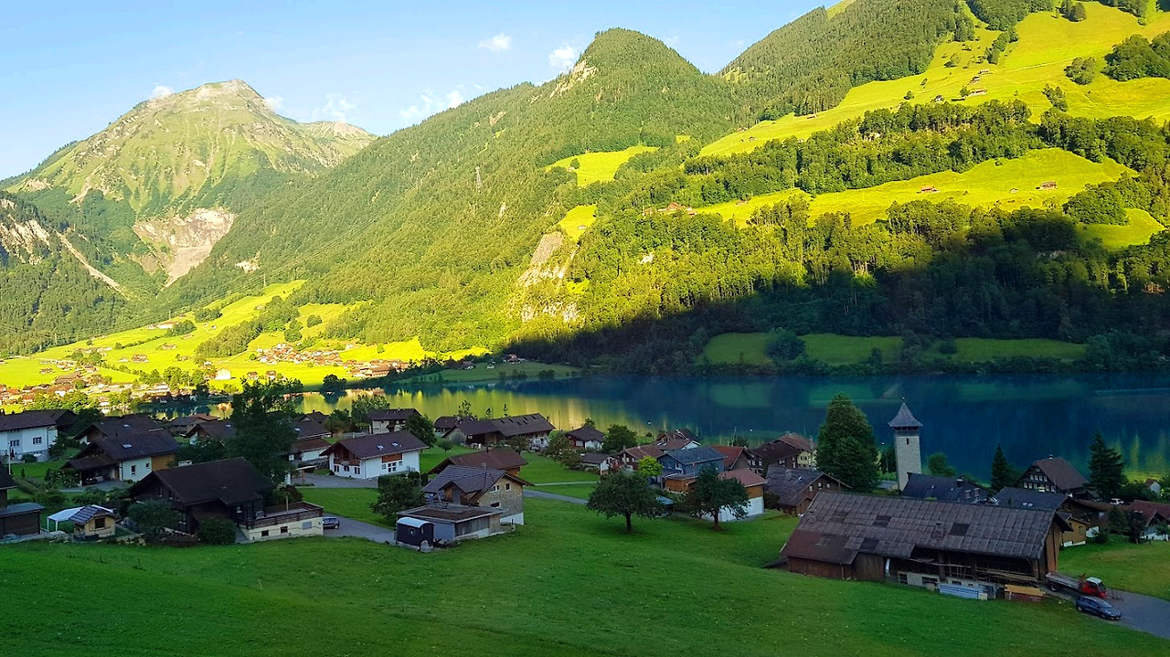 스위스를 생각하면 떠올랐던 풍경이 그대로 눈앞에 펼쳐졌다. 푸른 산이 그대로 비치는 에메랄드빛 호수, 호수 가까이에서 연둣빛으로 시작해 하늘을 향하며 점점 짙어지는 초록빛의 산, 융단 카펫 같은 풀밭에 그림처럼 자리한 나무집들을 보며 만화 알프스 소녀 하이디가 떠올랐고, 영화 에델바이스가 재생됐다. 컴퓨터 바탕화면에서 제공하는 이미지를 보고 있는 것은 아닌지 고개를 살짝 흔들어보기도 했다. 보고 있어도 믿기지 않는 풍경이었다.