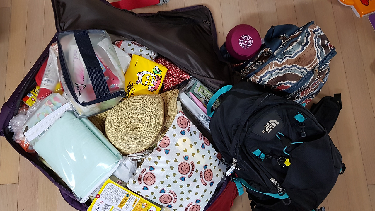 스위스는 산악지대가 많아 비가 오면 가을 날씨가 되고, 융프라우는 한 겨울이기 때문에 여름이라고 여름옷만 챙길 수는 없었다. 게다가 물가도 비싸고, 음식도 짜다는데 일곱살 동행이 있으니 음식 역시 일부는 챙겨가야 했다. 28인치 캐리어가 부족했다. 조금씩 포기하고 이래저래 틈 사이를 공략하며 겨우겨우 캐리어를 닫았다.
