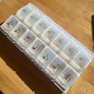 아침, 저녁 드시는 약은 미리 일주일 약통에 넣어 놓고 엄마께 약을 드시라고 말씀드립니다. 이제 요일은 기억하지 못하시지만 제가 말씀드리면 잘 찾아 드시고, 나중에 복약을 확인하기도 수월합니다. 패치형 약을 매일 바꾸는 것을 확인하려고 달력형 약통도 샀는데 어머니께서 이용을 잘 안 하셔서 치웠습니다. 새로운 것이라도 엄마께서 쉽게 이용하는 것이 있지만 손에 익지 않은 물건도 있습니다. 꼭 필요한 물건이면 꾸준히 연습하고, 그렇지 않으면 치워 놓습니다.