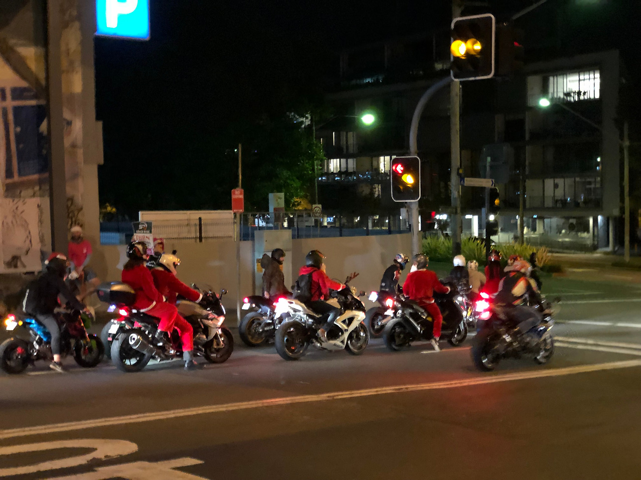 그중에서도 재밌었던 건 시드니 시내를 달리는 오토바이 폭주족들이었다. 그들이 지나갈 때마다 폭죽이 터지는 것처럼 엄청 큰 소리가 났다. 계속해서 오토바이들이 쏟아져 나오는 걸 보니 족히 오십 명은 넘어 보였다. 시끄러워서 쳐다보니 다들 산타옷을 입고 있는 게 아닌가. 어떤 사람은 오토바이에 반짝이 전구를 둘렀고, 어떤 사람은 자기 몸까지 전구를 둘렀다. 사람 몸통만 한 트리를 뒷자리에 태운 사람도 있었고 심지어 오토바이 양 옆을 썰매 모양으로 장식한 사람도 있어서 빵 터졌다. 갈림길마다 턴 디스 웨이, 이런 팻말을 들고 선 사람들이 있는 걸 보니 잘 조직된 동호회 같았는데, 산타 코스프레 구경하는 재미가 쏠쏠했다. 이런 이벤트와 함께라면 좀 시끄러워도 함께 즐길만하다는 생각이 들었다.