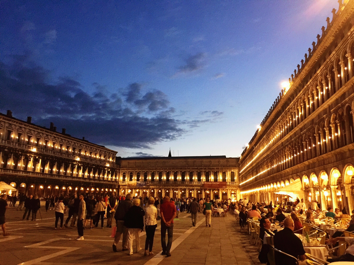 여행의 대미는 산마르코 광장이었다. 이 광장은 내가 여행다니면서 본 광장 중 가장 아름다운 곳이다. 광장이 큰데도 웅장한 건물이 삼면을 둘러싼 형태라 아늑하고 따듯한 느낌을 준다. 오늘은 낮에 바닷물이 넘치지 않았는지 바닥이 말라 있었다. 산 마르코 성당 앞에 바닷물 넘칠 때 깔아놓는 나무 판들이 쌓여있었다. 베네치아가 바다에 잠기지 않고 오래오래 있었으면 좋겠다.