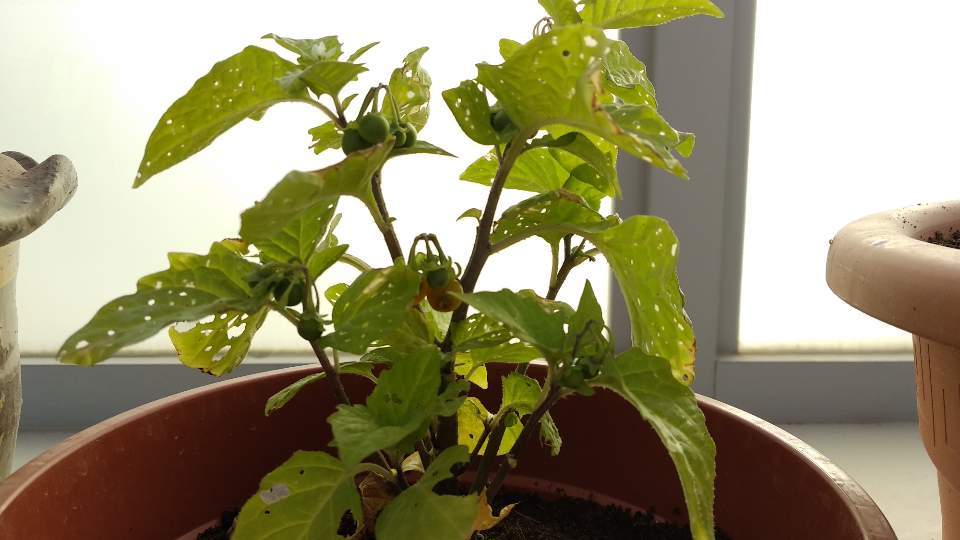 그리고 얼마 지나 꽃 아래로 초록색 열매들이 열리기 시작했다. 완두콩만 한 것들이 열리기 시작하더니 열댓 개가 열렸다. 사진을 찍어 지인들에게 물어보니 방울토마토라 했다.
