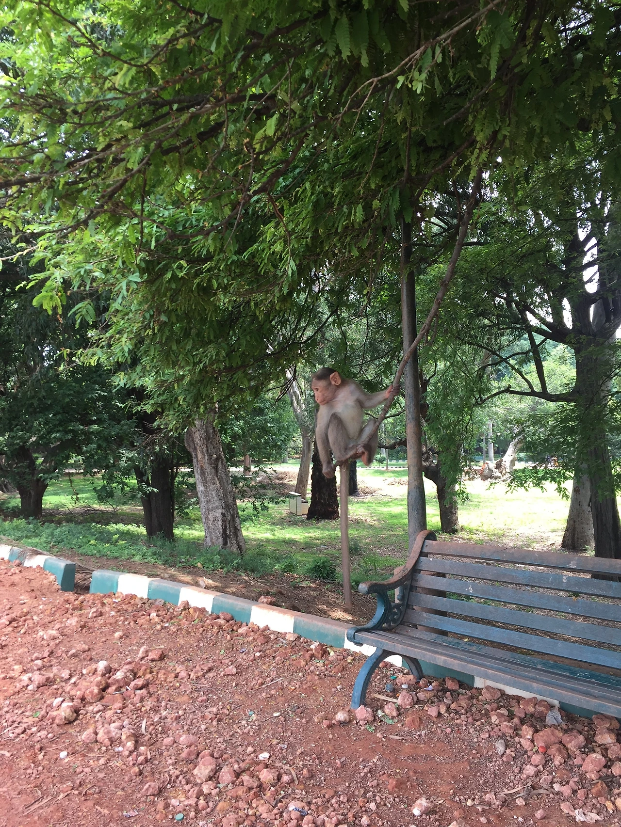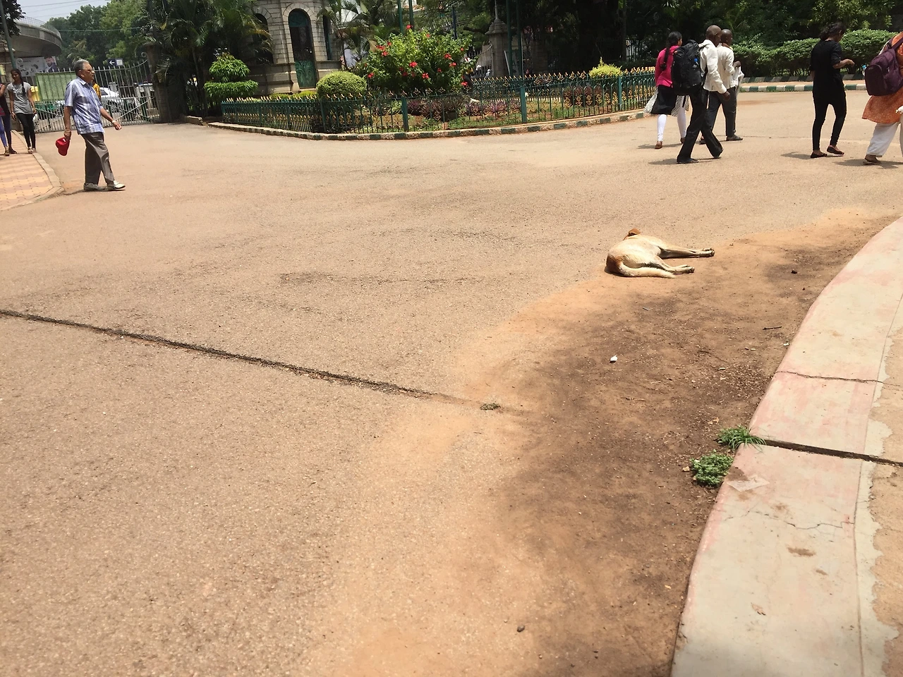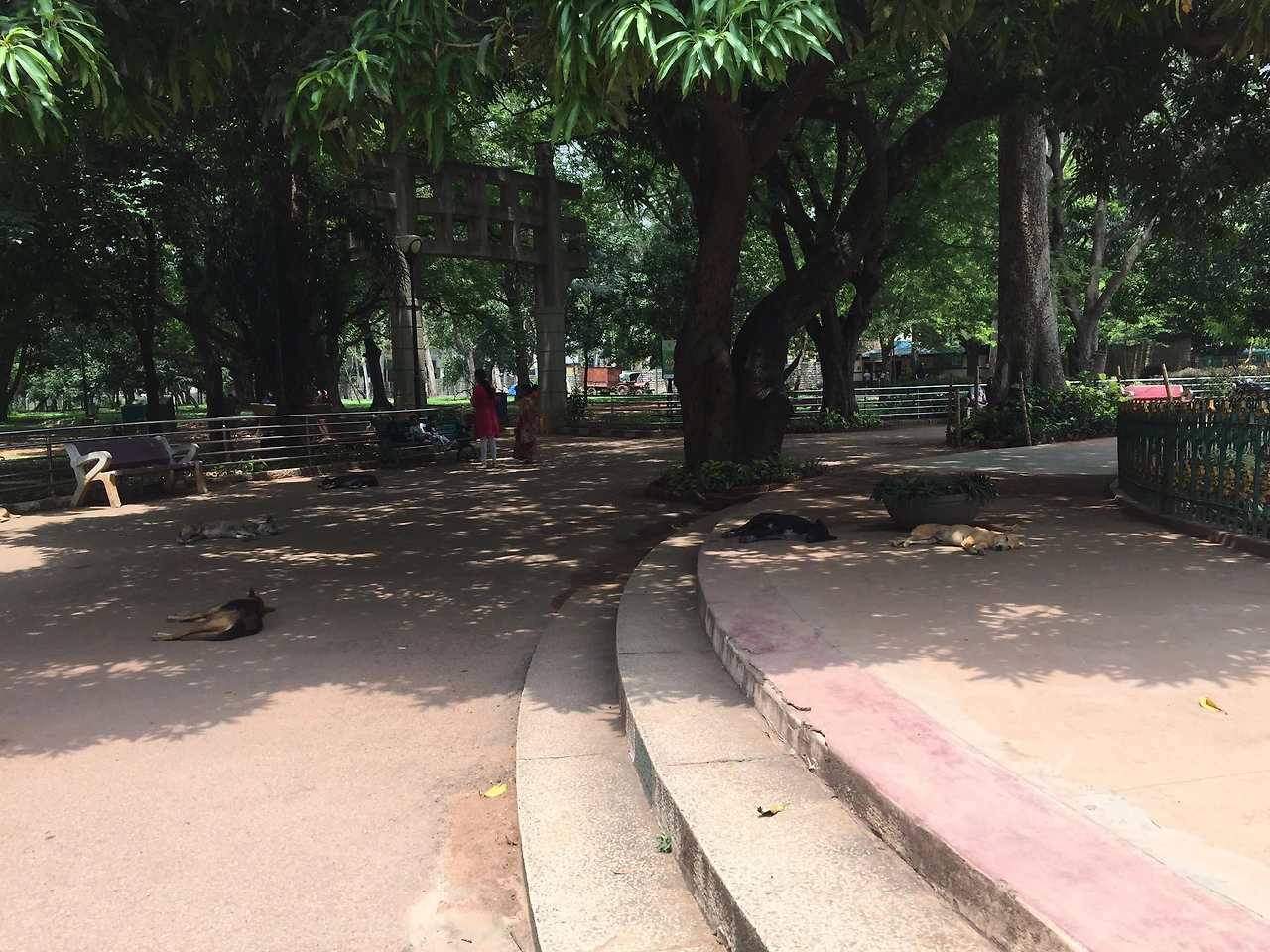Lalbagh역 부근에 있는 Lalbagh Botanical Garden에는 개와 원숭이가 사람들과 섞여 있었습니다.