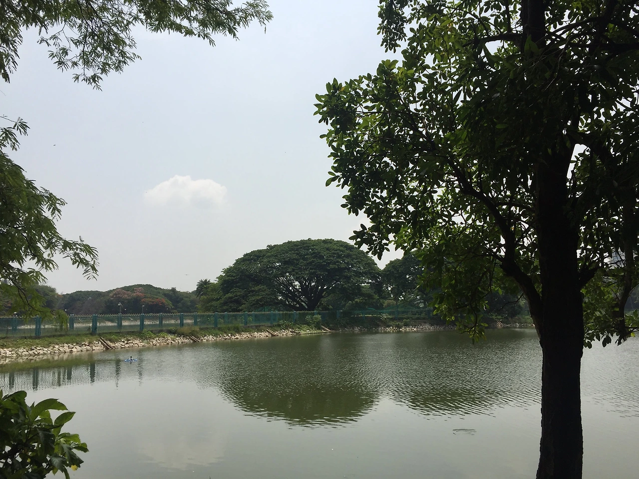 호수가 있는 공원의 풍경은 시원했지만 바람 한 점 없어 숨이 턱턱 막혀 왔습니다.