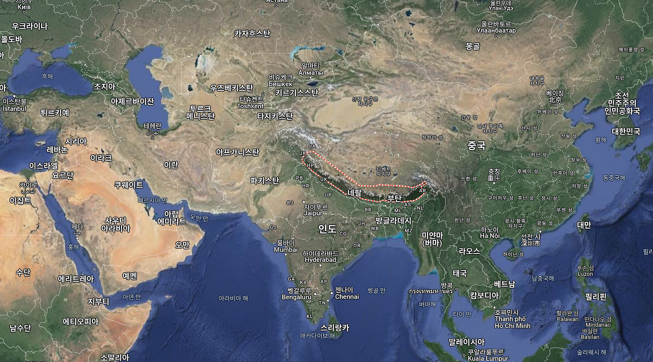지구 최고봉 산들을 연이어 품어 인도와 중국 사이를 가로막고 서 있는 히말라야 산맥(the Himalayas). 히말라야는 '눈'을 뜻하는 히마(hima)와 '곳간'이라는 의미의 알라야(ālaya)의 합성어다. 곧 '눈을 간직한 곳'이다.