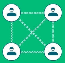 "지금까지 살펴본 섬나라 주민의 종이 원장(元帳)의 분산 공유 방식을 컴퓨터 네트워크에 구현해 보자. <그림>에는 섬나라 주민 4명의 컴퓨터가 연결된 것을 보여주지. 나중에 이걸 100명으로 확대해서 설명하면 되니까 그림은 단순한 게 좋아. 섬나라 주민 100명의 컴퓨터가 네트워크로 연결되었어. 금융 거래가 일어나면, 전자 서명을 한 거래 담긴 원장이 주민들의 컴퓨터에 자동으로 분산되지. 이제 모든 거래를 오프라인의 종이 거래가 아니라 디지털 네트워크상의 거래로 전환해야 해."