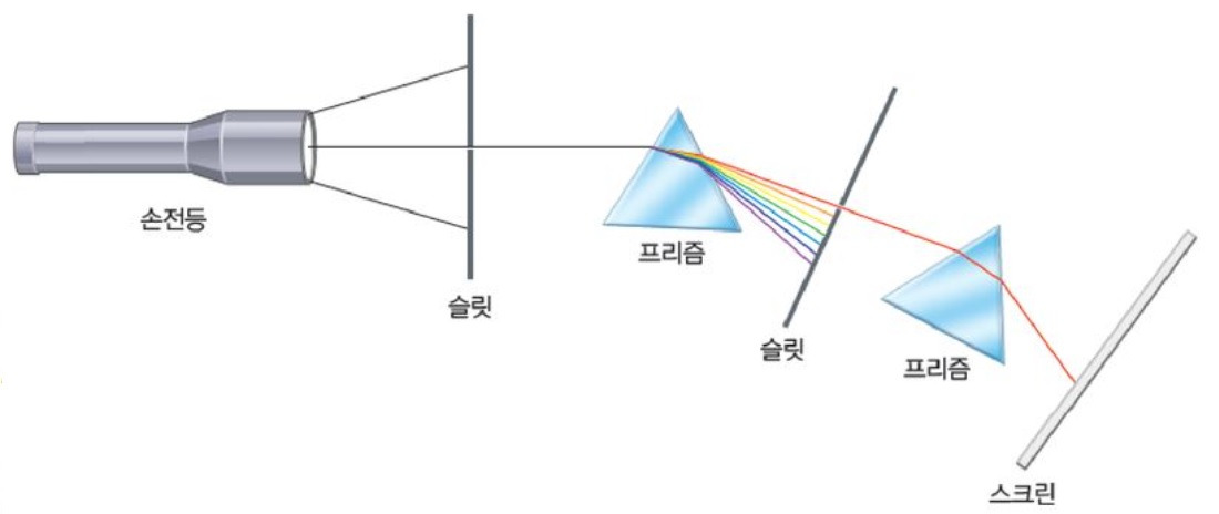 천재 물리학자 뉴턴(Sir Isaac Newton, 1643~1727)은 물체 자체에 색이 있고, 빛에는 색이 없다는 데카르트의 주장을 실험했다. 그는 두 개의 프리즘으로 빛을 두 번 분리하는 실험을 수행했다. 첫 번째 프리즘으로 백색광(태양 빛)에서 분리된 색깔 중에서 빨간색을 선택했다. 그리고 난 후 다시 그 빨간색을 프리즘으로 통과시켰다. 그 결과, 두 번째 프리즘으로 빨간색을 통과시켜도 빨간색이 나왔다.
