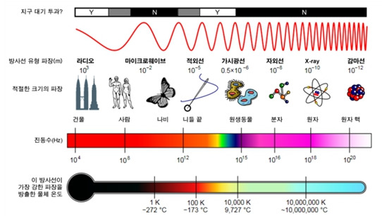 앞에서 말했듯이, 우리 눈은 파장의 길이가 380nm(나노미터)~760nm(나노미터)인 가시광선인 빛만 볼 수 있다. 가시광선보다 파장이 짧은 빛에는 순서대로 자외선, X선, 감마선이 있다. 가시광선보다 파장이 긴 빛에는 순서대로 적외선, 초단파, 라디오파가 있다. 1 나노미터는 10억 분의 1m이고, 100만 분의 1mm이다. 빛의 파장이 얼마나 짧은지 짐작할 수 있다.