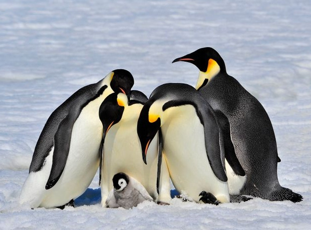 수컷들도 나름 꾀를 낸다. 은 몸을 밀착해 무리를 지어 알을 보호한다. 제일 바깥쪽에 있는 펭귄은 정면으로 눈보라를 맞는다. 그래서 순서를 바꿔가면서 앞쪽으로 나선다. 이런 자세로 수컷은 두 달 동안 아무것도 먹지 않고 알을 품는다. 암컷이 먹이를 구해 돌아오면 새끼를 안전하게 넘겨준다. 그제서야 수컷도 먹이를 구하러 바다로 뛰어든다. 황제펭귄 부부의 자식 사랑이 대단하다. 특히 황제펭귄 아빠의 헌신은 눈물겹다.