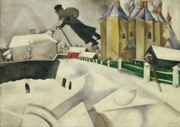 러시아 출신의 화가 마르크 샤갈(Marc Zakharovich Chagall, 1887~1985)이 그린 고향 마을 풍경이다. 샤갈은 과거 러시아에 속했지만, 지금은 벨라루스에 속하는 작은 마을 비테프스코에서 태어났다. 이곳은 겨울에 눈이 많이 내렸다. 유대인이 마을 주민의 50%가 넘을 정도로 유대인 전통이 강하게 남아 있었다. 샤갈은 프랑스에서 살면서 평생 고향을 그리워하며, 고향 마을을 주제로 많은 그림을 남겼다.
