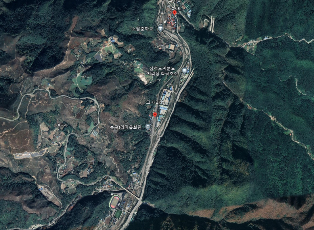 산과 산 사이에 늑구1리 마을이 자리했다.