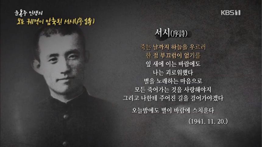 윤동주 시인의 '서시‘의 일부다. 윤동주의 유고 시집인 『하늘과 바람과 별과 시』에 수록된 시다. '서시'는 내용이 간결하면서도 고뇌의 흔적이 짙다. 식민지 시대를 살다 간 윤동주의 아픔이 담겨 있어 큰 사랑을 받는다.