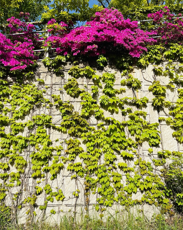 분홍 철쭉과 초록 담쟁이의 전투