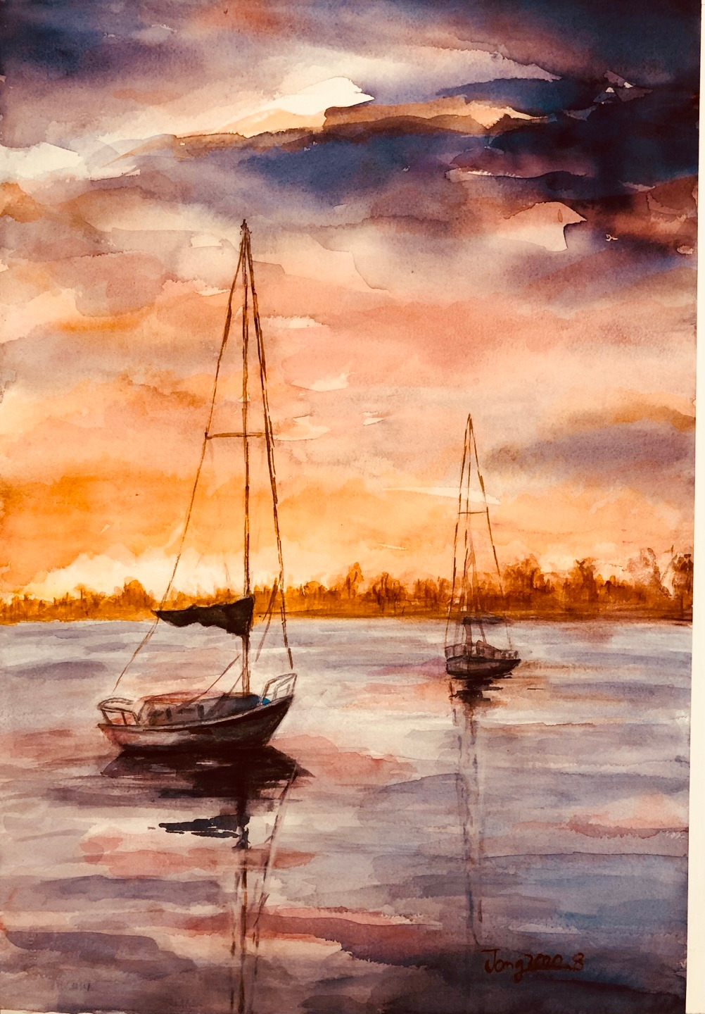 바닷가 노을을 제대로 표현했다며 내심 뿌듯했다.