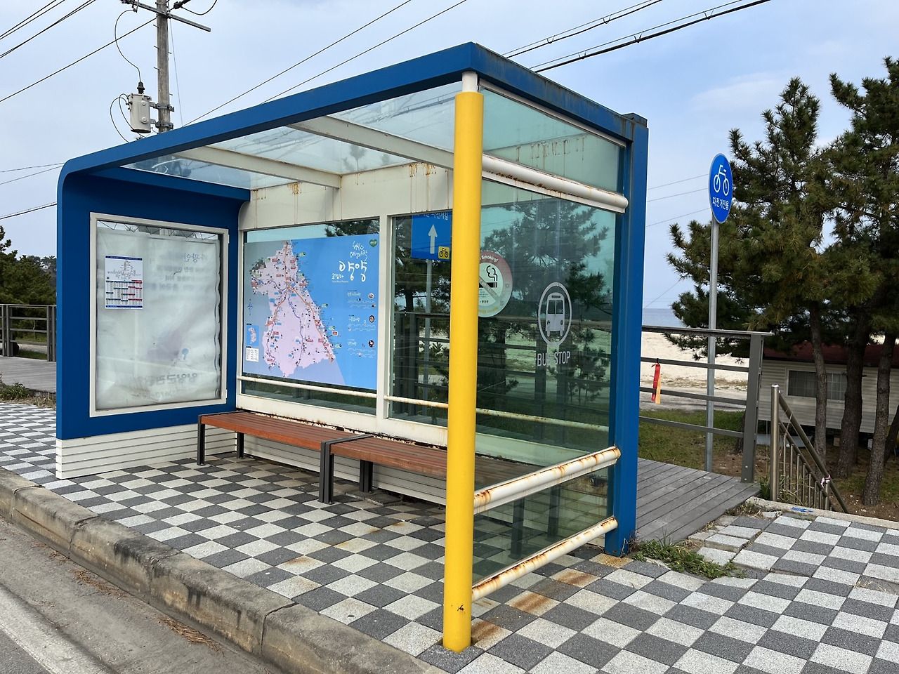 12시가 다 되어 버스는 인구면 현남중 앞바다가 정류장에 도착했어. 버스에서 내리면 곧바로 해변이야. 비바람에 온통 녹이 슬었지만 앙증맞고 귀여워. 작은 계단을 내려서니 짙푸른 동해가 나를 반겨. 바닷바람은 이내 머리를 헝클어 놓지. 끝 간데없는 바다는 하늘과 맞닿았고, 철 지난 바다는 쓸쓸해. 사람 그림자 하나 없는 인디고의 동해에 서면 마음이 그렇게 차분할 수 없어.