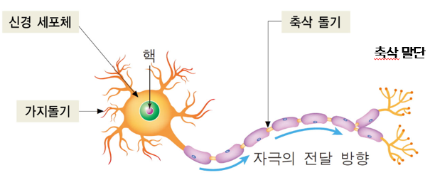 뉴런은 인간 뇌의 주요 구성 요소로, 생물학적인 관점에서 인간 지능의 기본 단위라고 할 수 있어. 뉴런은 받아들인 정보를 처리하고, 다른 뉴런에게 전달하는 역할을 담당해. 세포체는 뉴런의 핵심 부분으로, 뉴런의 기능과 생존을 지원하고, 가지(수상) 돌기는 세포체로부터 뻗어나왔어. 여기에는 수천에서 수만 개의 '시냅스'라는 연결 부위가 위치해 있어. 시냅스는 다른 뉴런의 신호를 가지(수상) 돌기를 통해 받아들이는 부위야
