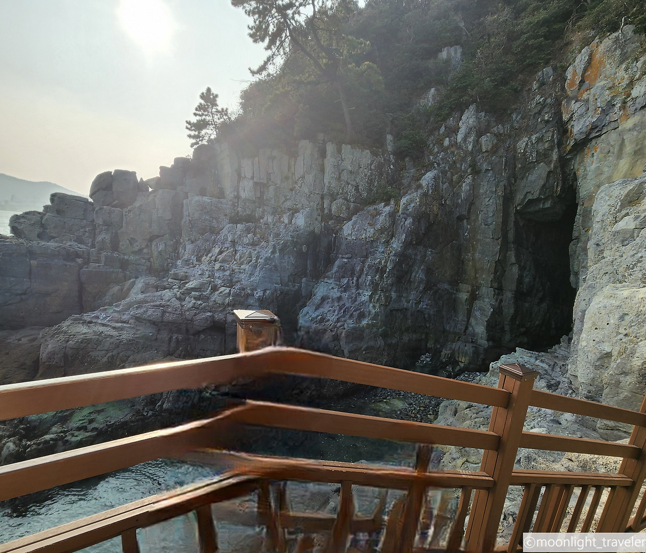바다가 있는 곳이라면 꼭 있는 동굴. 파도와 바람의 침식과 퇴적작용으로 생긴 굴이다. 이 동굴 이름은 '용굴'이다. 이 굴 안에 용이 살았으며 안에서 지하수를 받아먹었다는 전설이 있다. 어느 정도 깊이 파였는지는 잘 보이지 않지만 자연의 신비로움 앞에 사진도 연속으로 찰칵찰칵 찍었다.