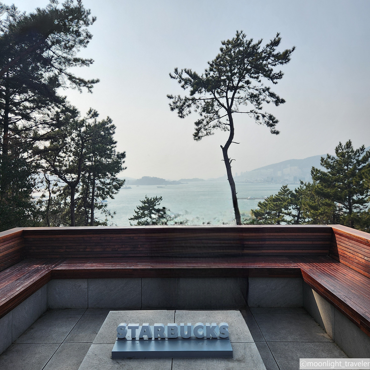 2층으로 올라가 야외로 나갔다. 하. 이제야 살 것 같다. 복잡한 실내를 벗어나니 산책로와 탁 트인 바다가 보인다. 아, 이래서 유명했구나. 남해와 여수시가 파노라마로 한눈에 펼쳐진다. 와. 돌산도에서 보니 또 사뭇 다르다. 어제의 야경 불빛과 다르게 오늘은 바다의 이 우리를 환영한다. 바다도 어디에서 보기 나름인 듯. 3층 루프탑도 있다. 많은 테이블과 의자가 있지만 겨울임에도 불구하고 자리가 만석이다. 역시 명절 연휴. 하긴 꼭 명절이 아니어도 이곳은 늘 관광객이 많겠다. 이곳만의 시그니처 메뉴를 맛보고 남해 경치를 보는 특별한 곳임은 분명하니. 여행 가는 곳마다 스타벅스 굿즈를 구입하는 편이라 머그잔을 살펴봤으나 '여수' 술잔은 있지만 머그잔은 없네. 외국처럼 각 지역 특색의 모습이 담긴 에스프레소 잔이 출시되었으면 좋겠다는 아쉬움을 뒤로하고. 사람들에 밀려 그저 따뜻한 카페라테 한잔 사고 가게를 나섰다. 경치를 봤으면 됐지 뭐.