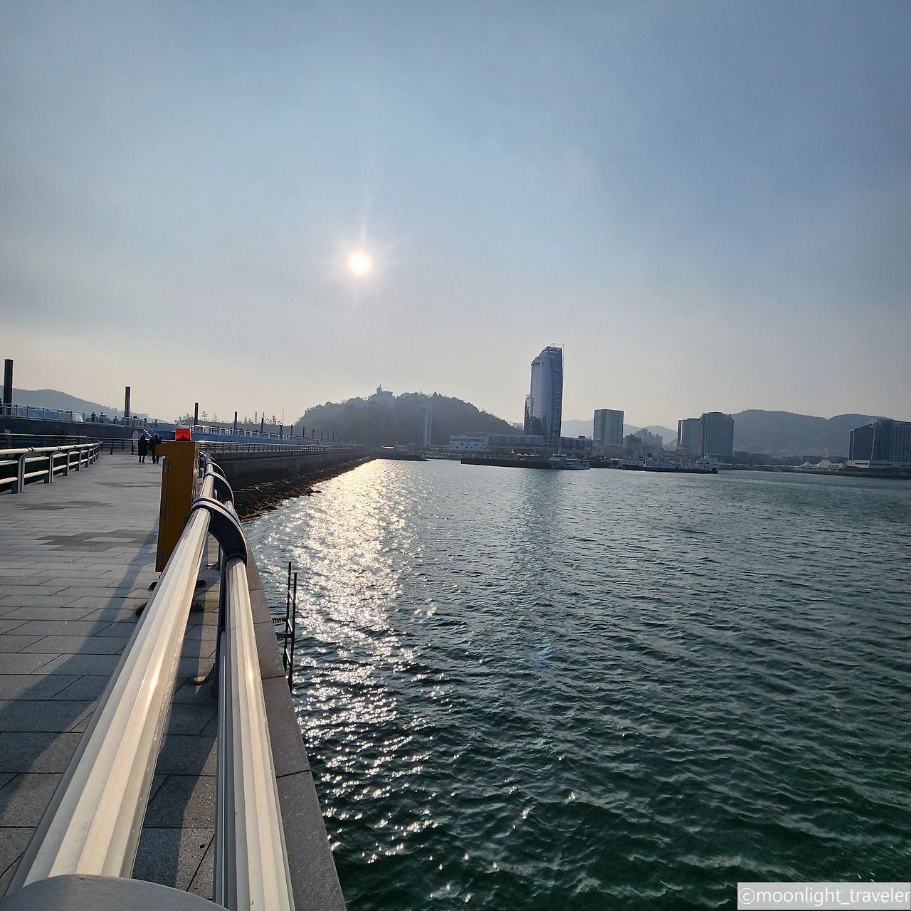 "저곳 봐봐. 어제 우리 묵었던 호텔 앞 산책길이네. 그 옆이 오동도야."