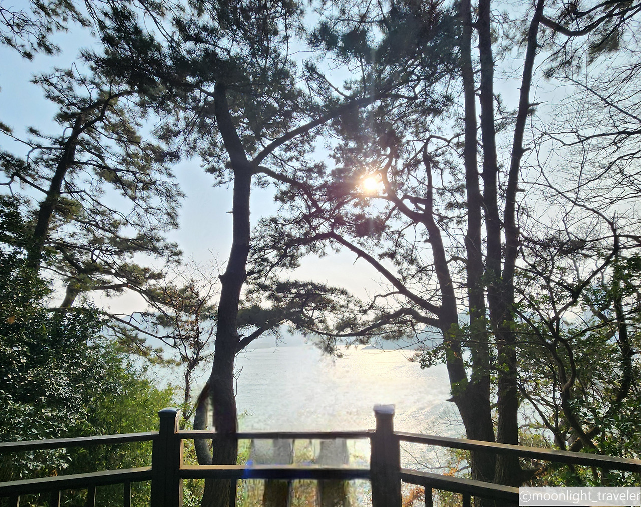 바다 옆 산책 길을 걸으니 마치 제주에 온 듯. 어쩔 수 없나 보다. 제주와 견주어 보는 것은. 마치 서귀포 외돌개 산책로 같으면서도 새섬 산책로 같다. 어제 어두컴컴한 밤바다와는 달리 오늘 보니 여수 바다가 아주 고요하다. 큰 물결 없이 잔잔하며 고즈넉하다. 주변 작은 섬들이 많아서 그런가. 나무 사이로 비치는 겨울 햇살이 눈부시다. 여수의 겨울 바다는 따스하다.