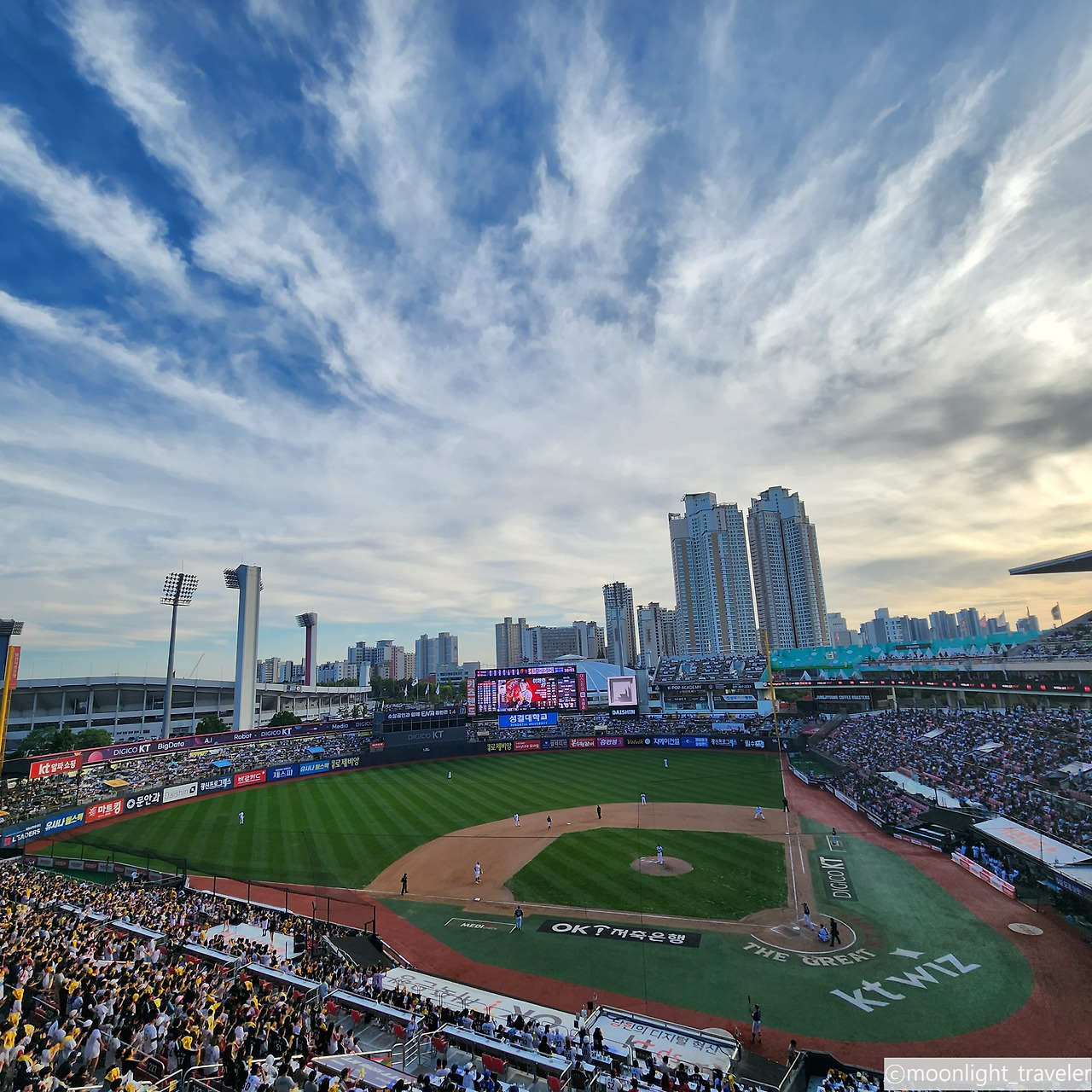 잠실야구장을 비롯하여 고척, 인천 문학, 수원, 대전, 대구, 부산 사직으로 원정 응원을 갔다. 먼 길을 달려간 만큼 날씨도 좋고 경기도 이겼으면 좋겠지만. 경기 중 비가 와서 우천 중단이 되기도 하고, 폭염으로 열병에 시달리기도 했다. 무엇보다도 경기 패배를 맛보며 다시는 이 경기장 오지 않으리라, 다짐한 적도 있었다. 패배한 이유가 이 경기장 탓이라 여기며. 그래도 우리 팀을 응원하며 그 지역의 야구 경기장을 구경하며 각 구장마다 유명한 음식을 맛보는 재미도 빼놓을 수 없다. 어느 야구장을 가든 맛집은 꼭 있으니 먹어보시길 추천드린다.