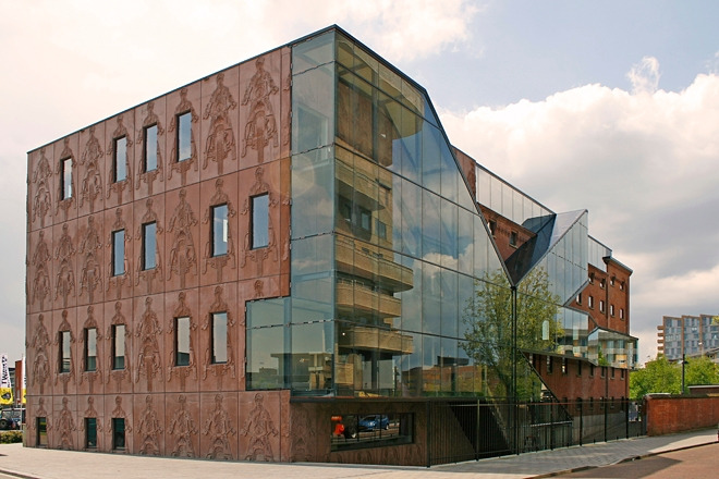 목화 창고라.. 우선 건물의 쓰임새부터 과거의 향기가 물씬 난다. 역시나 더 이상 사용하지 않는 목화 창고를 전시 박물관으로 재사용했다. (개인적으로 이런 방향의 건축을 좋아한다. 예를 들면 화력발전소였던 건물을 박물관으로 재사용한 TATE MODERN) 기존의 건물은 목화 창고에 적합했던, 낮은 4층 건물이었는데 이 낮은 높이가 공공기능으로 충분하지 않았고 채광에도 문제가 있었기 때문에 높낮이를 변화시켰다. 그 사이에는 상설전시를 위한 충분한 공간을 만들었고 새로운 재료를 이용해(유리 부분) 3층의 파사드와 천장을 높였다. 다채로운 파사드 구성, 세월을 가지고 있는 낡은 벽돌과 새로운 기능 실현을 위한 구조적 변화에서 오는 조화로움이 눈길을 끄는 건물이다.
