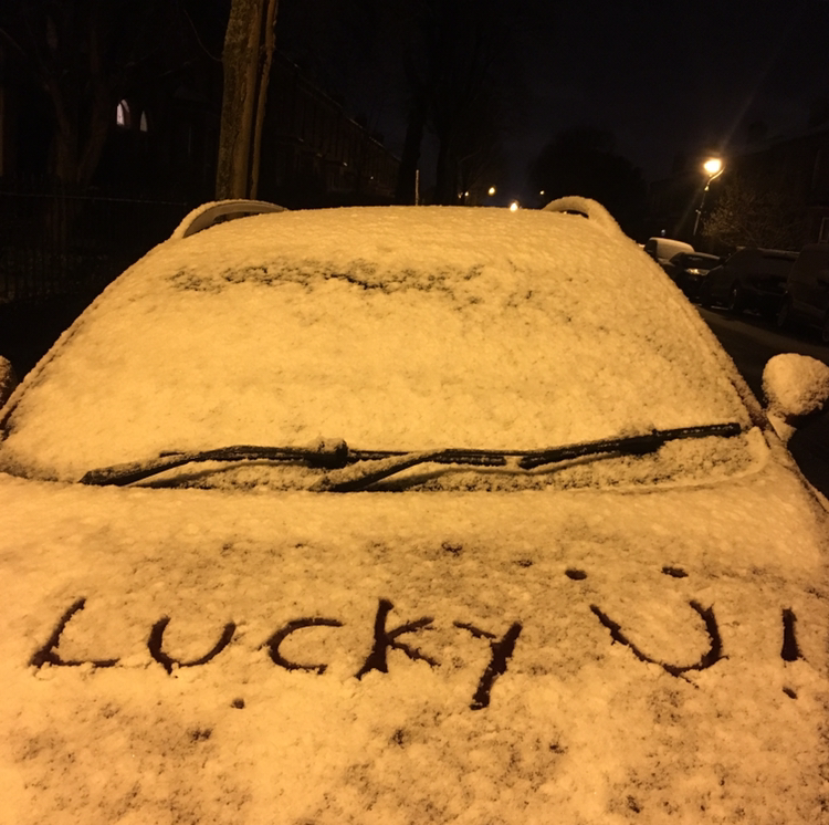 눈 쌓인 더블린이라니! 감격스러워서 집앞에 있는 누군가의 차에 선물을 드리고 왔다. 아침이면 다 녹아버릴지도 모르겠다만. 눈이 나를 위로 해줬듯이 집으로 가는 길에 누군가가 나의 메시지를 보고 위로를 받았으면 했다. 눈이 우리에게 주는 것들은 생각보다 많을지도 모르겠다.