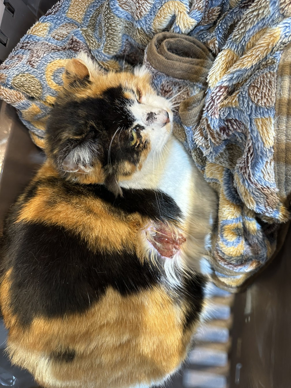 월요일 아침에 출근을 해서도 일에 집중이 되지 않았는데, 마침 캣맘님이 내 문자를 보고 전화를 주셨다. ‘삼색이가 학대를 당해 심하게 다쳐서 유기보호센터로 갔다’고 하셨다. 순간 캄캄했다. 치료가 되면 다시 원래 지내던 곳으로 방사한다고 하는데, 기본적인 치료(소독, 연고 처치 등)만 한다는 얘기를 들으니, 어떻게 얼마나 다쳤는지 모르고, 다시 아이가 멀쩡하게 돌아올 수 있을지 마음이 놓이지 않았다.