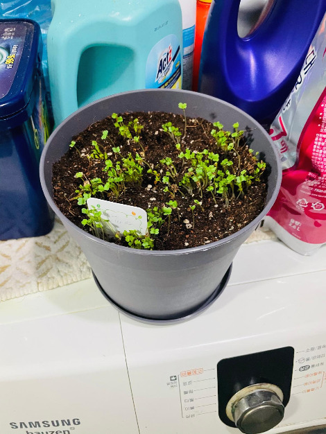 일주일 뒤, 루꼴라를 키우고 있다는 사실이 기억난 나는, 서둘러 화분이 있는 세탁실로 갔다.