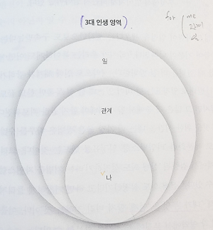 '인생 영역'이라는 단어가 언급되는 것은 아니지만, 아래와 같이 자신이 중요하게 생각하는 일로도 인생 영역을 나눌 수 있다.