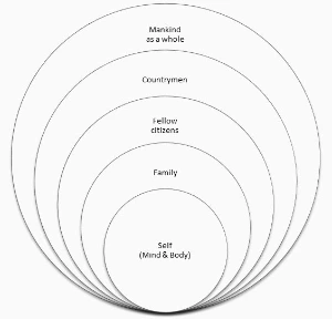 [^3] [책, 초집중 79p] 히에로클레스는 우리 삶이 상호 연결돼 있음을 보여주기 위해 의무의 서열을 나타낸 동심원을 만들었다.