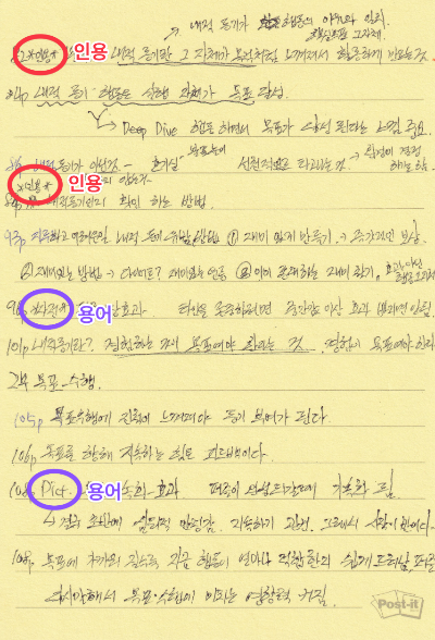 • 구조 내 참조 : 특정 주제 블록의 시작 메모에 관련 측면을 대문자로 표기하고, 해당하는 메모나 메모 시리즈로 참조하되 구조 메모와 가까운 위치에 배치함.