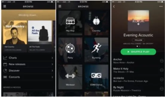스포티파이는 "10달러"와 "광고"로 빠르게 성장했다. 월 이용요금 10달러를 내면 스포티파이의 데이터베이스 내의 모든곡을 제한없이 청취할 수 있다는 점이고 두번째로는 비과금 이용자도 '광고'를 청취하면 무료로 음악을 들을 수 있도록 하는 것이었다. 이는 음원을 소유하지 않고도 들을 수 있도록 함으로써 사용자의 편의를 꾀했고, 광고수익을 창작자에게 저작권료로 지급하겠다는 취지의 서비스이다. 소니,유니버셜, 워너 등 유의미한 파트너사를 유치하였으며 2008년에 본격적으로 사업을 개시했다.