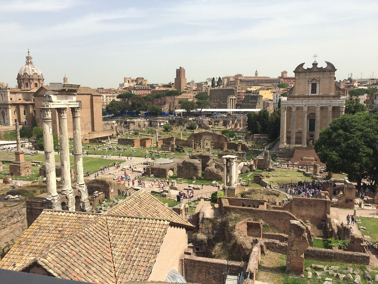 짐을 풀고 예약했던 워킹 투어에 참여하였다. 워킹투어는 스페인 광장에서 콜로세움까지 가는 것이었는데, 이탈리아 남부 시실리 출신 가이드의 열정적 설명으로 즐겁게 따라다닐 수 있었다. 그는 로마에서 황제가 죽었을 때 신격화하는 의식에서 사용되는 노래를 들려주기도 하고, 로만 포럼 유적지에서는 디지털 복원 사진을 보여주기도 했다. 가는 길에 곳곳에서 지역의 수호성인 조각을 볼 수 있었는데, 가이드에게 물어보니 지금 젊은이들에게는 그러한 조각에 큰 의미는 없는 것 같았다.