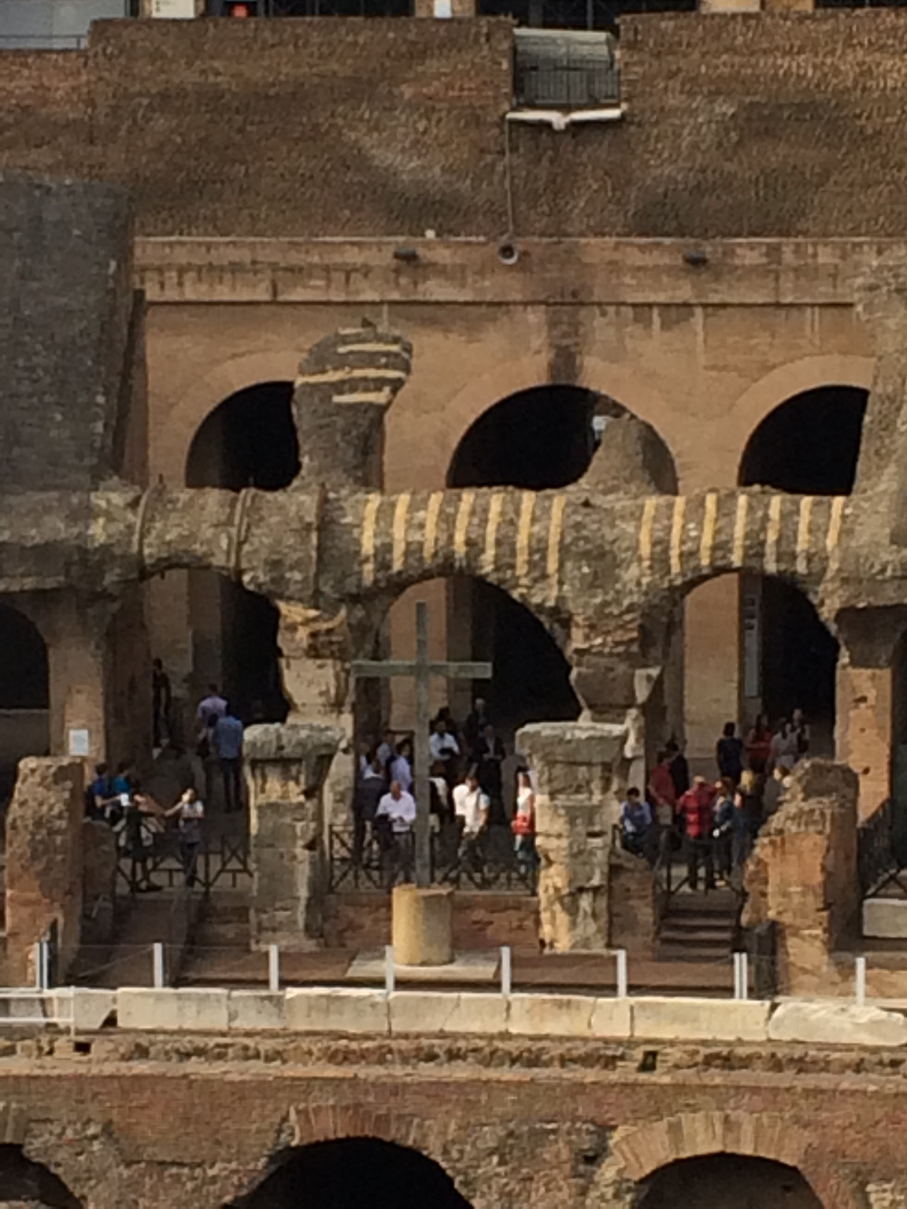 간단한 워킹 투어를 마친 후 콜로세움으로 들어갔다. 콜로세움은 잘 알려진 대로 넓고 컸다. 그러한 건축물이 고대에 지어졌다는 것이 놀랍기도 했지만, 지금까지 기본 모습을 보존하고 있다는 게 더 놀라웠다. 가이드 말에 의하면 이태리인들은 건축물을 종종 재활용한다고 한다. 콜로세움도 재활용 용도로 사용하려 했는데, 한 교황이 그렇게 콜로세움의 자재를 분해해서 가져가는 것을 막았다 했다. 우리가 기억하는 원형경기장으로의 활용은 로마시대 이후 없었고, 상가건물로도 쓰이고, 작은 교회도 그 안에 짓고, 요새로도 쓰이는 등 다양한 용도로 사용되었다고 한다. 그럼에도 불구하고 외형은 참 잘 지켰다는 게 자못 신기했다. 콜로세움의 벽에 수 천년의 역사가 스며들어있다 생각하니 벽 하나 만져보는 것만으로도 살짝 설레었다. 수많은 로마 시민들이 그곳에 와서 다양한 볼거리를 구경하고, 소리 지르고 했던 그 공간, 중세인들이 물건을 사고팔았던 그 공간에 이제는 볼거리 살 거리가 없어도 관광객들이 모여든다. 이제는 콜로세움 그 자체가 볼거리이다.