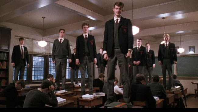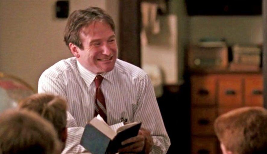 영화의 각본가인 ‘톰 슐만’이 영향을 받은 두 명의 스승을 바탕으로 고무적인 연설, 독특한 교육 스타일의 ‘존 키팅 선생님’이 탄생되었다. 실제로 책상이나 쓰레기통에 서서 수업을 가르쳤고, 에드거 앨런 포의 ‘까마귀’를 읽는 동안 ‘never more’라는 단어가 나올 때마다 반 학생들은 의자에 서서 팔을 펄럭였다고 한다.