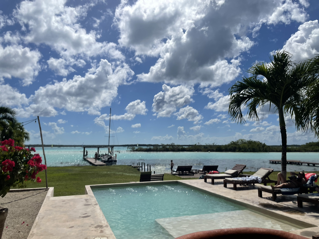 멕시코 시티에서 바깔라르를 가는 방법은 생각보다 쉽고 간단하다. 굳이 깐꾼 공항까지 올라가지 않아도 체투말(Chetumal) 공항으로 바로 가는 직항을 이용하면 된다. 항공권도 저렴하고 1시간 50분 밖에 걸리지 않아서 주말을 이용해 다녀오기에도 무리가 없다. 다만 호텔을 예약하는데 고민이 많았는데 작은 동네여서 그런지 규모가 큰 호텔 체인은 없고 까사(집) 정도의 작은 숙소가 전부였다. 여행을 계획할 때 숙소의 컨디션을 가장 중요시하는 나였지만 어쩔 수 없이 적당한 숙소를 예약했다. 다만 아이들이 잘 놀 수 있도록 호수가 바로 앞에 있는 곳을 예약했다.