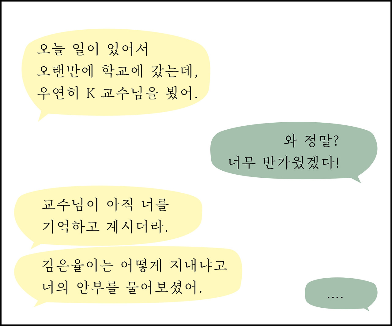 두서 없고 뜬금 없던 그 메일에 K 교수님은 5년 전과 같이 여전히 다정하게 답을 해주셨다.